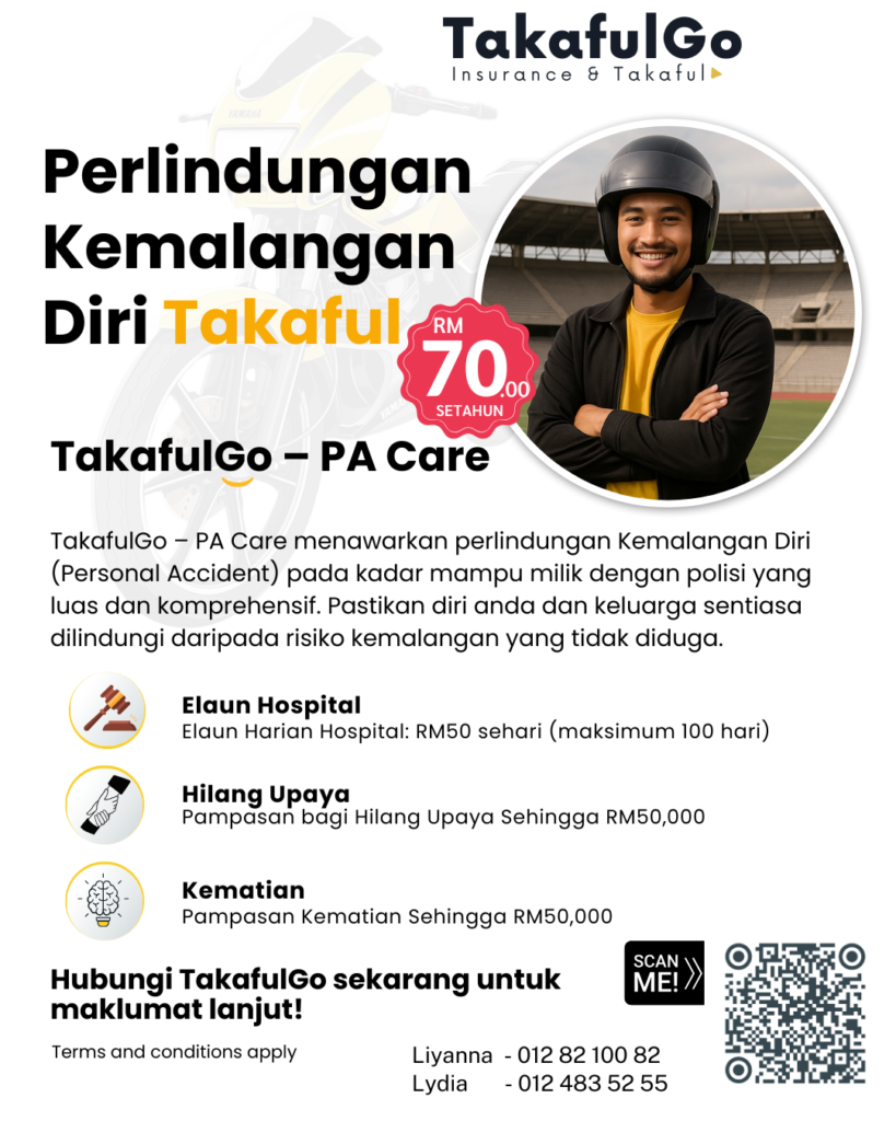 Sebagai penunggang motosikal, anda berdepan risiko kemalangan jalan raya setiap hari. Dengan perlindungan yang tepat, anda bukan sahaja dapat mengurangkan risiko, malah melindungi diri dan orang tersayang daripada beban kewangan yang tidak dijangka.